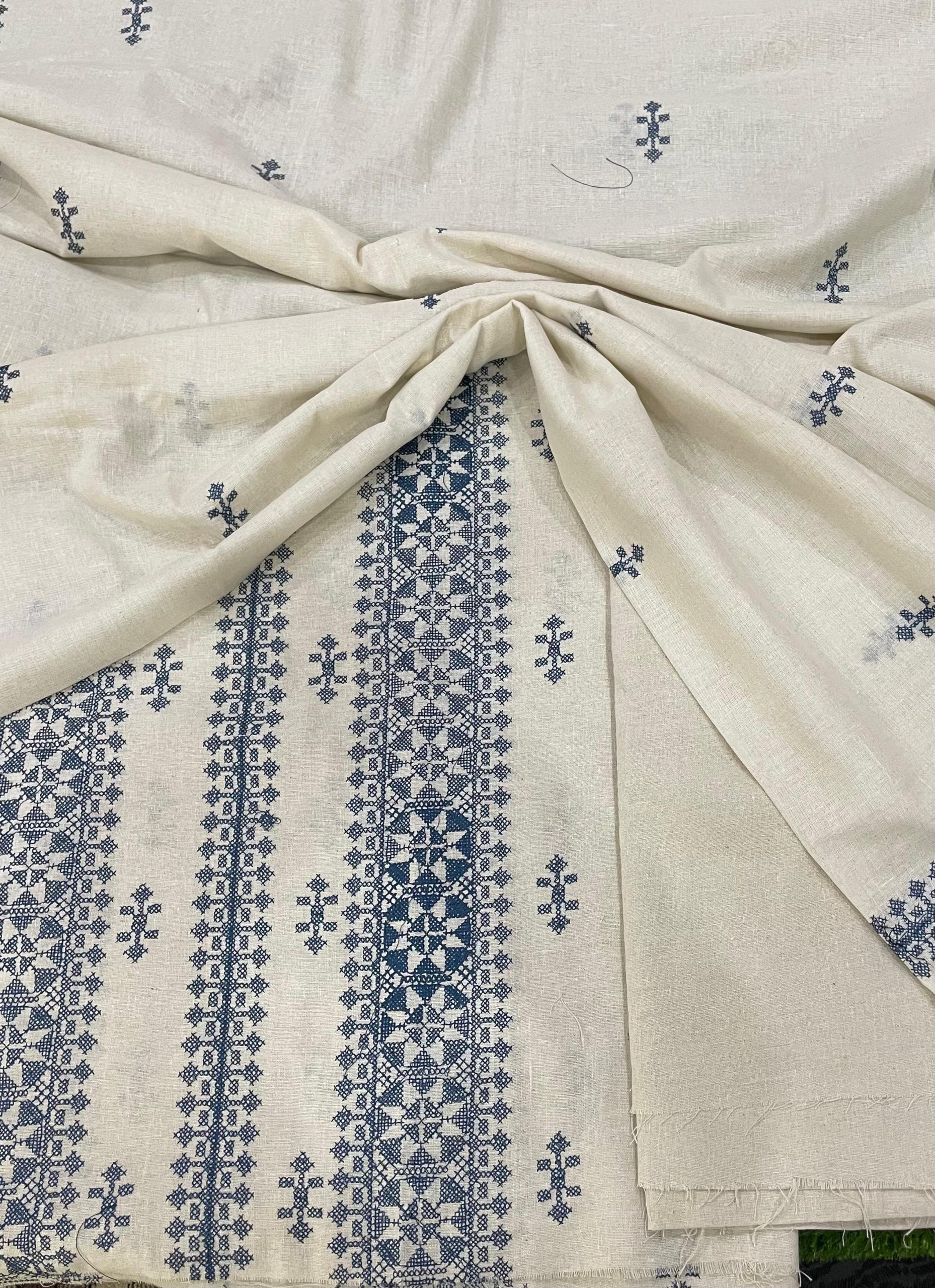 Inspired by Nordic and Kashmiri geometric art, Blue Nordic Weave is a statement piece from SAM9’s Khaddar Collection. The navy blue embroidery stands out beautifully on a cream khaddar base, blending tradition with a modern twist. Perfect for cool winter mornings or casual evening gatherings.