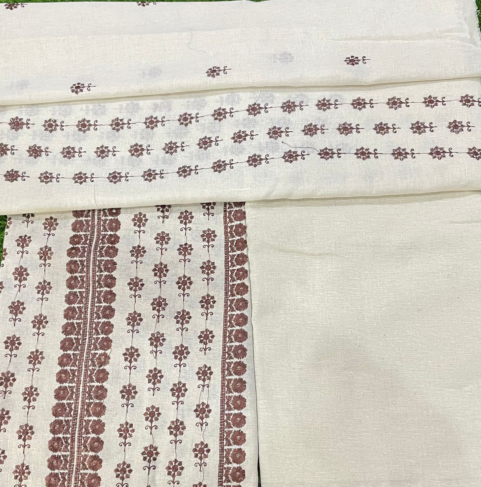 Wrap yourself in timeless elegance with Maroon Floral Charm — a soft cream khaddar suit adorned with fine maroon floral embroidery. The classic floral motifs and delicate border detailing give it a refined, traditional aura while keeping you cozy through the winter season.